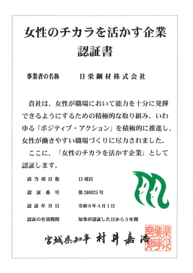 本制度は、女性が能力を十分に発揮し、安心して働き続けられる職場環境づくりに積極的に取り組む企業を宮城県が評価・認定するものです。女性の登用や人材育成、仕事と家庭の両立支援など、さまざまな取り組みが対象となります。