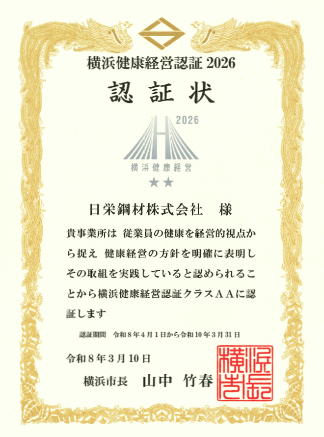 このたび、横浜市より「横浜健康経営2026認証事業所 クラスAA」として認証されました。